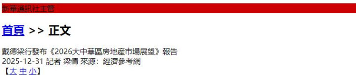 戴德梁行發布《2026大中華區房地産市場展望》報告——经济参考网